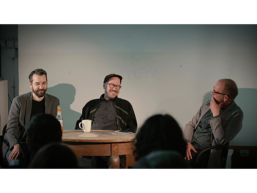 80. Salon: "Täter" mit den Filmschaffenden Arne Dechow, Peter Ederer und Niklas Kleber.