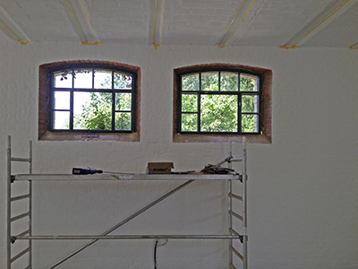 Schöne neue Fenster im Erdgeschoss des Pferdestalls. Die Türen folgen in ein paar Tagen ...