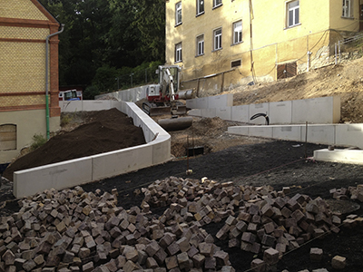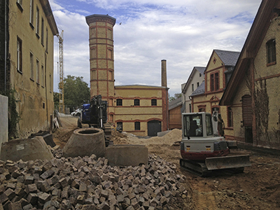18.08.2020 Pflaster- und Einfassungsarbeiten an der Abfahrt zum Malzhaus und zwischen Sudhaus und Mühlengebäude. |