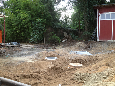 21.08.2020 Erdarbeiten und Pflastersteine im Vorbereich des Backsteinhauses. |
