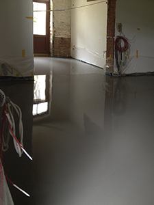 02./03.09.2020 Links: Großes Atelier im Pferdestall EG:Vorbereitung des Estrich-Untergrundes für den Guss des Feinestrichs. Rechts: Gegossener Feinestrich im kleineren Atelier. |