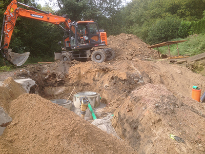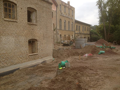 Südseite der Walkmühle: Kanal- und Entwässerungsarbeiten.