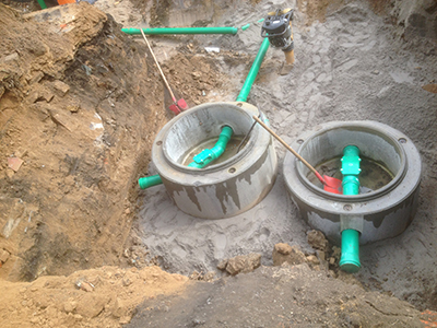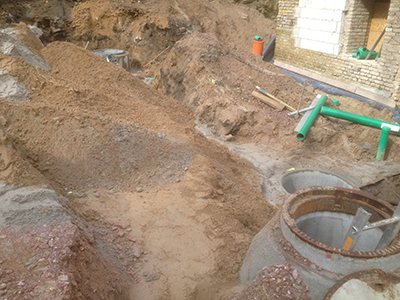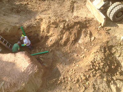 Arbeiten an den Entwässerungsleitungen rund um das Getreidelager.