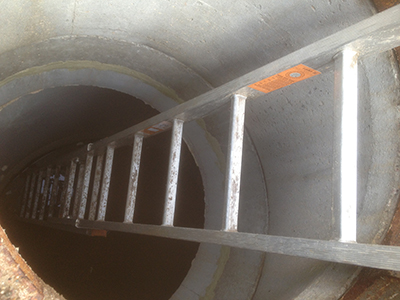Blick in einen der Zisternenschächte der Löschwasserbevorratung.