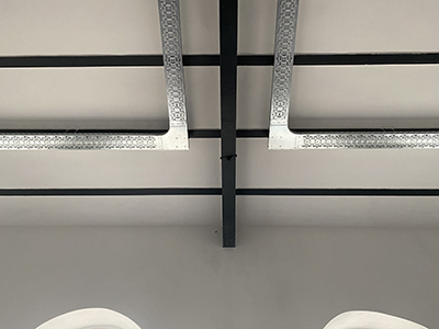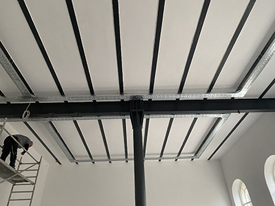 Arbeiten an der Decke des großen Ausstellungssaals im Brauhaus.