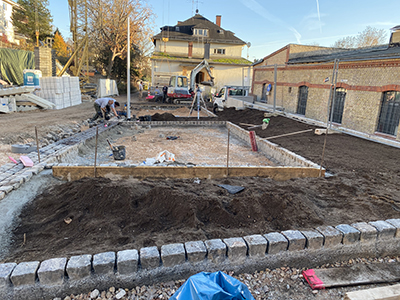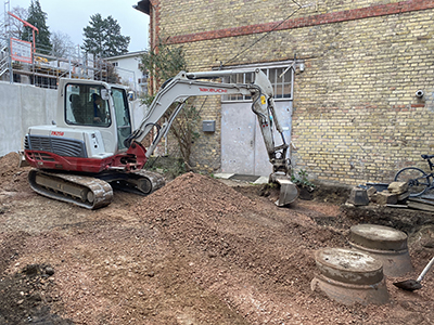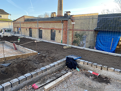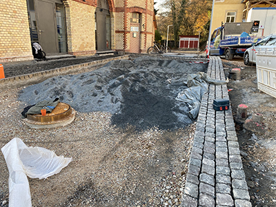 Arbeiten an den Außenanlagen und Parkplätzen rund um das Sudhaus.