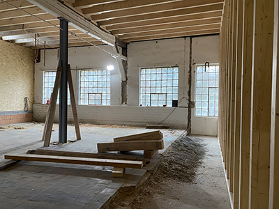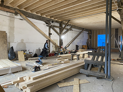 15.12.2020 Holzbau im späteren großen Veranstaltungsraum des Kühlschiffs. |
