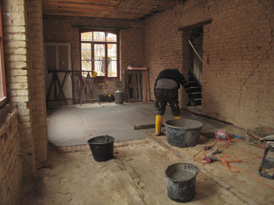 17.02.2017 Anlegen des Estrichs im EG des Mühlengebäudes. |