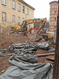 Das Areal zwischen Mühlenhaus und Haus Esch während der Tiefbauarbeiten.