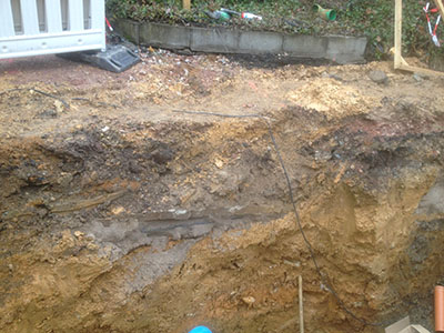 Rechts: Der Hauptstrang der neuen Kanalisation nähert sich dem Haus Esch.