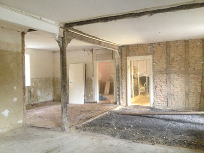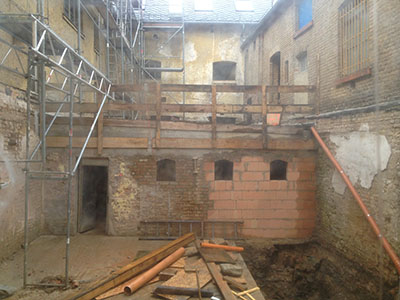 21.10.2016 Entkerntes Erdgeschoss des Backstein-Mühlengebäudes. Was für eine räumliche Großzügigkeit hier entstanden ist! |