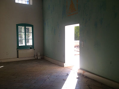 09.08.2016 Aus statischen Gründen muss der Künstlerverein zwei seiner Ausstellungsräume schließen. Als Ersatz bekommt er einen wunderbar proportionierten Raum, der zuvor als Lager genutzt wurde. Er liegt in unmittelbarer Nachbarschaft zum großen Saal und zur Scheune im Veranstaltungsbereich. Um diese Räume miteinander zu verbinden, werden die historischen Durchgänge wieder hergestellt. Insbesondere der Zugang zum großen Saal wird durch seine ehemalige, hohe, flaschenförmige Form besonders eindrucksvoll sein. |