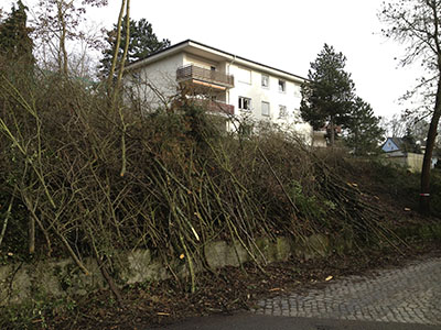 28.01.2014 Das neue Jahr beginnt traurig: Totalkahlschlag auf dem gesamten Walkmühl-Gelände. Nicht nur Sträucher und Büsche fallen, sondern auch die meisten Bäume! Manche Verantwortlichen sprechen gar davon, dass "alles bodengleich gemacht werden müsse." Muss das wirklich sein? Für die Atmosphäre und das Ambiente der Mühle ist es jedenfalls ein schwarzer Tag. |