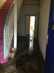 11.07.2014 Immer wieder ein Schock: Durch die Türen eindringendes Wasser nach sommerlichen Platzregen. Die Kanalisation und Entwässerung der Mühle ist eine Katastrophe. Diesmal wird sogar unser Ausstellungsraum komplett geflutet zum Glück ohne laufende Ausstellung ... Da hilft wieder einmal nur Wasser schippen ... während es bereits schon durch die Geschossdecke hindurch ins Vinotto tröpfelt .. Sandsäcke vor den Türen müssen auf unbestimmte Zeit wohl ein dauerhaftes Provisorium werden. |