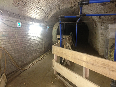 Keller des Brauhauses: Provisorischer Fluchtweg vom "Vinotto" ins Freie. |