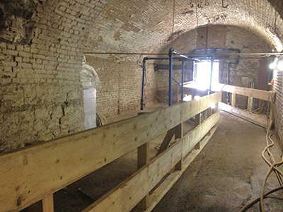 14.08.2018 Freilegung der Kellergewölbedecke im Bereich des abgebrochenen Brauhaus-Vorbaus. |