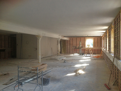 Beginn der Verputzarbeiten im Obergeschoss des Getreidelagers. |