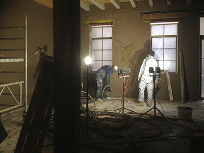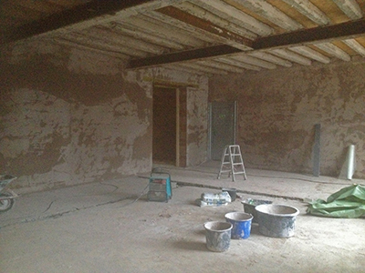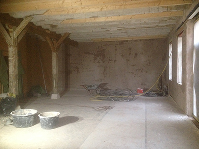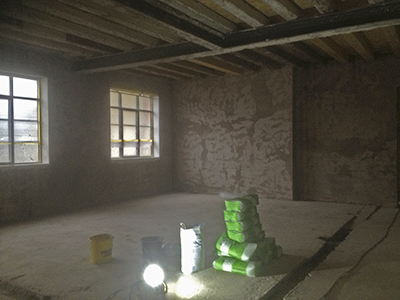 03.12.2018 Frisch aufgetragener Wandputz im künftigen Malzhaus-Atelier. |