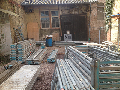 10. + 11.03.2019 Das Gerüst an der Nordseite des Brauhauses ist abgebaut und wurde äußerst sinnvoll mitten vor dem Zugang zum Künstlerverein abgelagert. |
