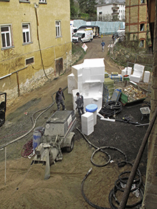 Dämmmaterial für die Geschossböden im Malzhaus.