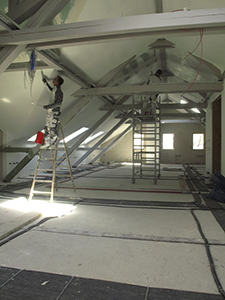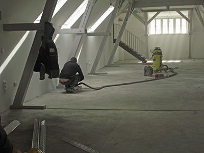 Dachgeschoss Pferdestall: Vorbereitung des Estrichs für die letzte Schicht Sicht-Estrich.