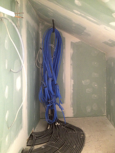 Dachgeschoss Malzhaus: Malerarbeiten und "Kabelsalat" im Raum für die Computer-Server der späteren Büromieter