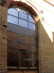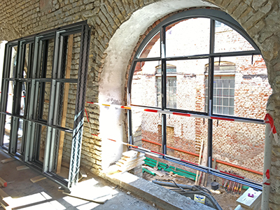 Einsetzen der großen Bogenfenster im Sudhaus.