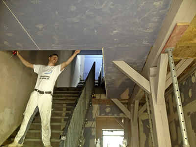 Trockenbauarbeiten im Treppenhaus und Flur des Malzhauses EG. | ||