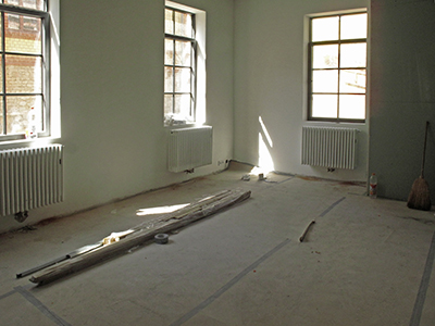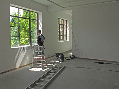 Kurz vor der Übergabe an die künftige Mieterin: Letzte Reinigungsarbeiten im Malzhaus-Atelier.