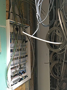 Verdrahtung der Stromversorgung für die zahlreichen Stromschienen, Steckdosen und der Datenleitungen