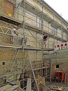 Schlämm- und Malerarbeiten an der Nordfassade des Südflügels.