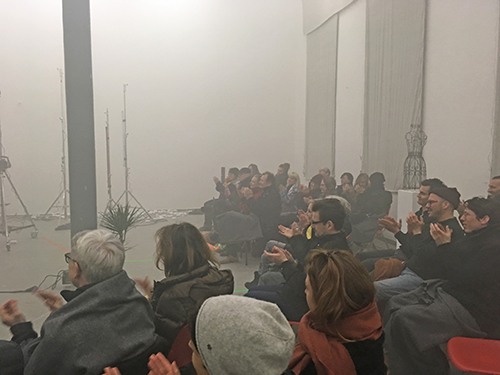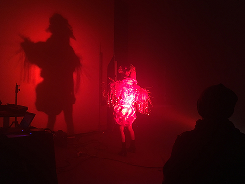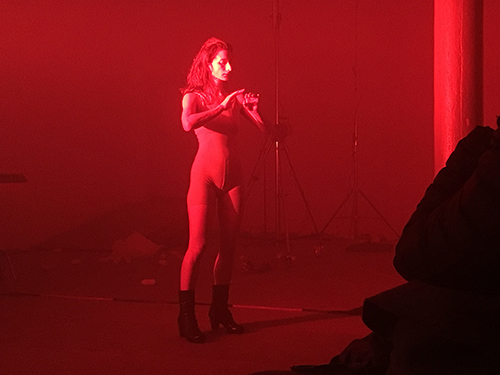 "UNRUHE". Perfomance von Mareike Buchmann und dem Ensemble impuks m in der Walkmühle.