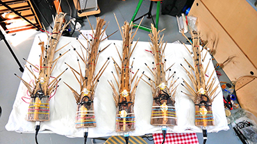 | »Poly Palms« ist ein von Andreas O. Hirsch gegründetes Ensemble, das die Möglichkeiten der von Hirsch entwickelten Zupfinstrumente gemeinsam erweitert und erforscht. Die elektrifizierten Palmwedel gehen auf eine Marokkoreise vor bald 20 Jahren zurück, bei der Hirsch entdeckte, dass vertrocknete Palmblätter das Potential natürlich gewachsener Kalimbas haben, da sich ihre Dornen zupfen und stimmen lassen. Nach ausführlicher Nutzung des Instruments im Zuge von Soloperformances und Konzerten mit anderen Instrumentalisten ist dies der Auftakt zum Wedeln im größeren Stil. Abstrakt-Geräuschhaftes versus rhythmische Strukturen, holzig-warme Klänge versus Palmtronix Kammermusik am Übergang zwischen Oase, experimenteller Elektronik und Fluxus. | Mit: Jan Arlt Volker Hennes Andreas O. Hirsch Patricia Koellges |