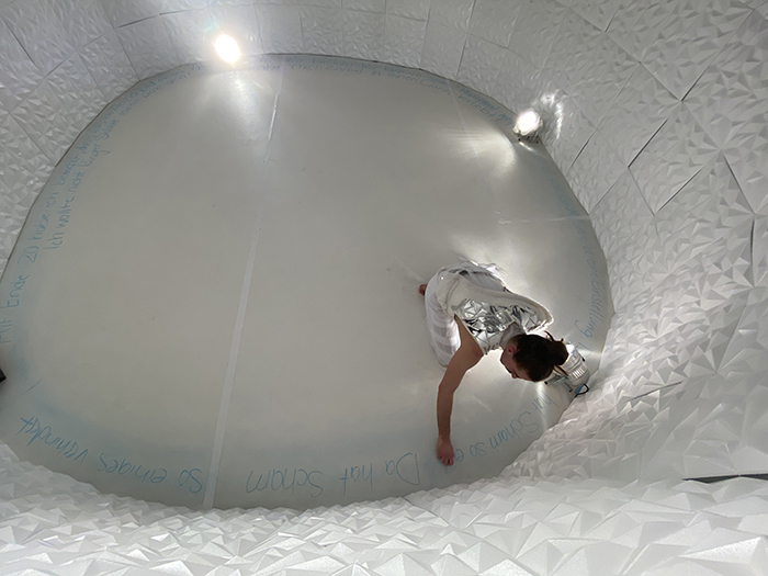 Wiederaufnahme der interaktiven Performance von Eva-Maria Damasko in der Walkmühle.